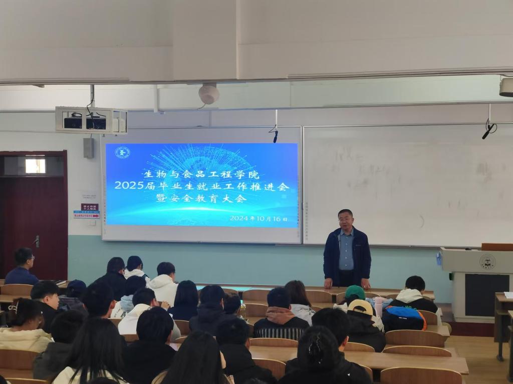 为进一步推进2025届毕业生就业工作,确保学生高质量充分就业,同时保障学生安全,yl6809永利官网集团于2024年10月25日在1教109教室召开“2025届毕业生就业工作推进会暨安全教育大会”,学院院长张元新、党委副书记孙京南、副院长张仁文、学办主任裴林及2025届全体毕业生参加此次会议,会议由裴林主持。