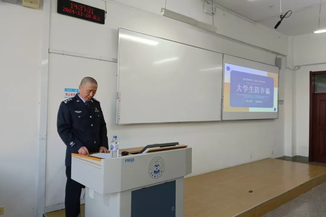 车警官的讲话犹如一场及时雨,为大学生们的财产安全和校园的和谐稳定保驾护航,让同学们在面对诈骗时能够多一份警醒,少一份轻信。