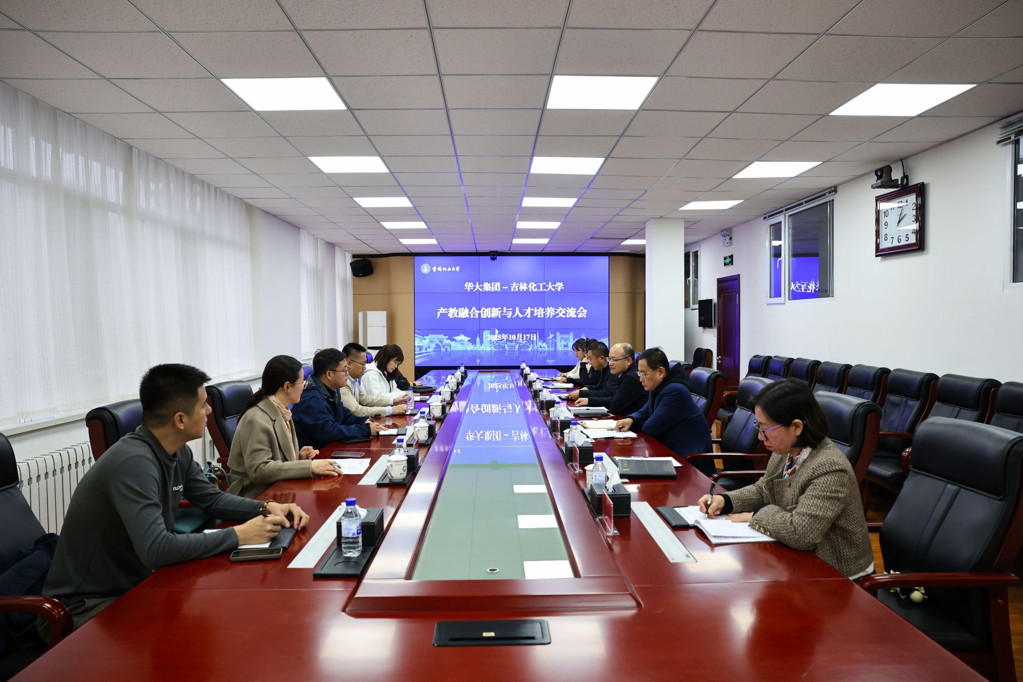 2025年10月17日,华大集团联席董事长助理、华大集团猛犸教育负责人王凯一行到访我校,就进一步进行产教融合创新与人才培养进行座谈交流。校党委常委、副校长王立国、教务处长姜德龙、yl6809永利官网集团院长张元新及学院相关部门人员参加交流活动。