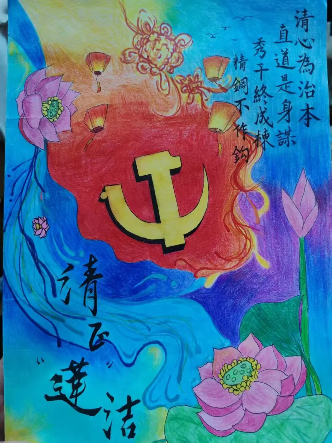廉洁文化如春风化雨,润物无声。此次廉洁文化作品创作,不仅是一场艺术与思想的碰撞,更是一次崇廉尚洁精神的传承与弘扬。当笔墨勾勒出莲的清雅、竹的挺拔,当文字流淌出廉的正气、洁的风骨,我们看到的是同学们对廉洁文化的深刻诠释与真情表达。期待这些作品能在校园廉洁文化作品展中绽放光彩,也愿这份对廉洁的坚守与追求,如墨香般浸润校园每一个角落,让清风正气长存,让廉洁之花常开!